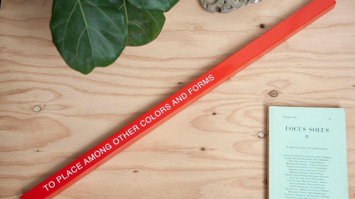 A solid aluminum bar, painted a striking red-orange, and bearing the text “TO PLACE AMONG OTHER COLORS AND FORMS.” Limited to a numbered edition of 25 with accompanying edition card, produced and signed by Clark. This is an artwork intended to occupy different areas of your home over time, creating new relational experiences in areas you may have become “blind” to from over-familiarity. This piece asks you to re-see the arrangement it sits with as…